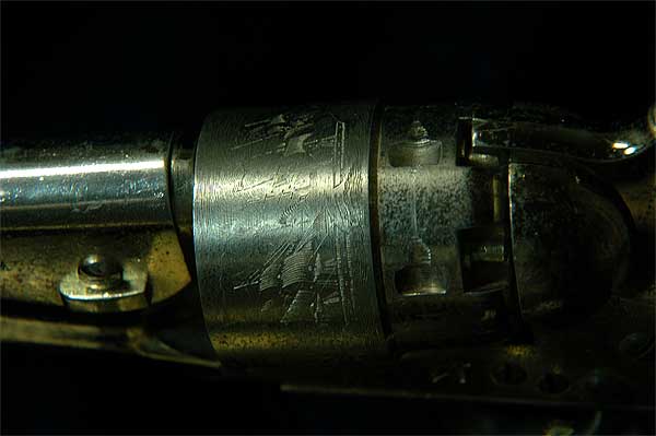 金型による彫刻であろうが素晴らしい出来栄えだ。 シリンダーを支えるボルトも実物のように加工されている。いい出来だ。 全体に非常に良く出来たモデルだ。これで重ければ言うことなしだが。 |