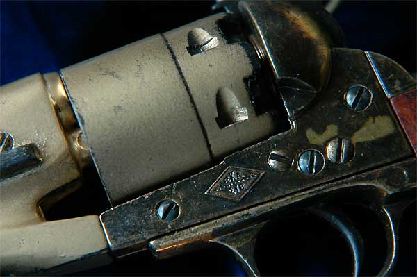 実銃の世界では、1851年の36口径ネービーが大ヒットしたコルト社はその後ドラグーンを製造し、1860年に44口径のアーミーを発売。南北戦争に遭遇し銃は売れまくったことだろう。そのせいか知らないが、創業者サミュエル・コルト氏は1862年働きすぎて亡くなった。 |