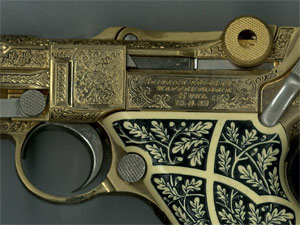 ↑A4ヨコの生データをサイズ縮小したもの。少し下から撮られている。 本物の生データは馬鹿でかいので注意。 ガバメントのスキャンは暗かったのでPhotoshop で明るくしているが、 ルガーのほうは、いじっていない。消しゴムで高さ調整。