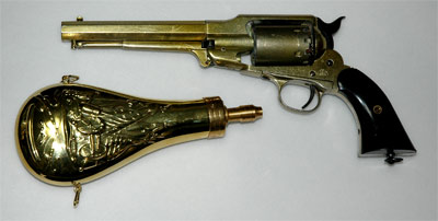 前装銃の黒色火薬入れであるフラスコはアクセサリーに持って来いだが