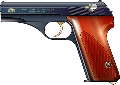 1937年、ドイツ、ストレートブローバック、コンシールド・ハンマータイプ。 HScとは、ドイツ語でダブルアクションを示す Hahn-lSelbstlspanner のc型という意味。 a,b型は試作のみ。 民間、警察、軍用に使用された。終戦まで25万丁生産された。 2次大戦後、1968年再生産され380口径が追加された。 戦後型はフレーム後端が別部品になった。
