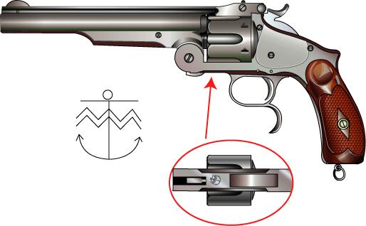 .44 SW センターファイアー、6連発。 大口径化のためフレームを強化しトップ・ブレイクとなった。当初リムファイアーで開発されたが 陸軍の要請により.44 SW センターファイアー弾使用となった。アメリカン・モデル。 カット図は、分解図を見て想像で描いたので不正確。